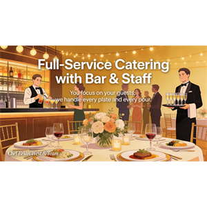 Full-Service Catering with Bar & Staff Upgrade your event with full-service catering that includes bar service, professional staff, and seamless execution from start to finish. Chef Brian West’s team