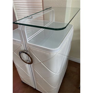 White Padded Chrome Upscale Mobile Bar Table Opens Up- Mobile bar or decor. Pick up in San Diego